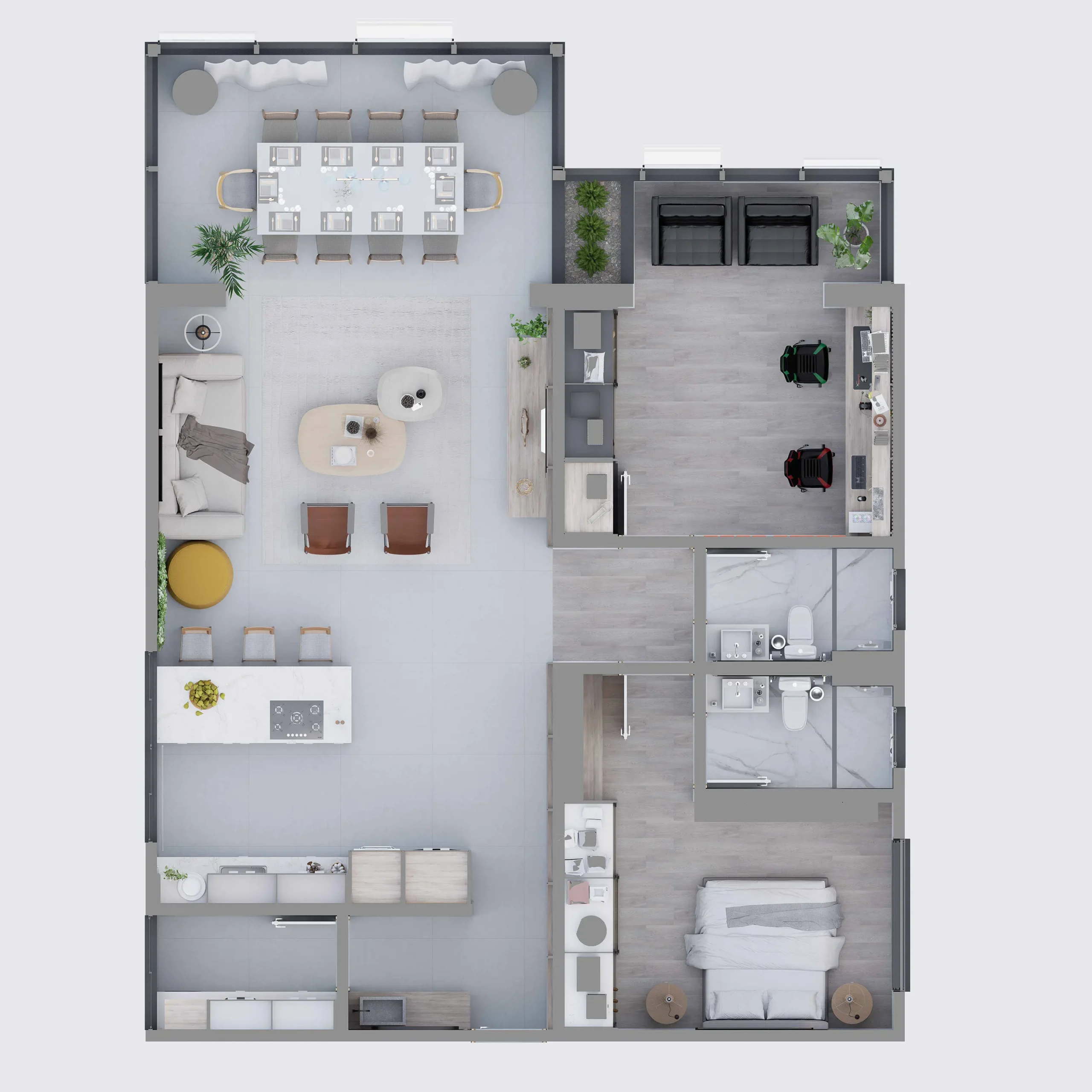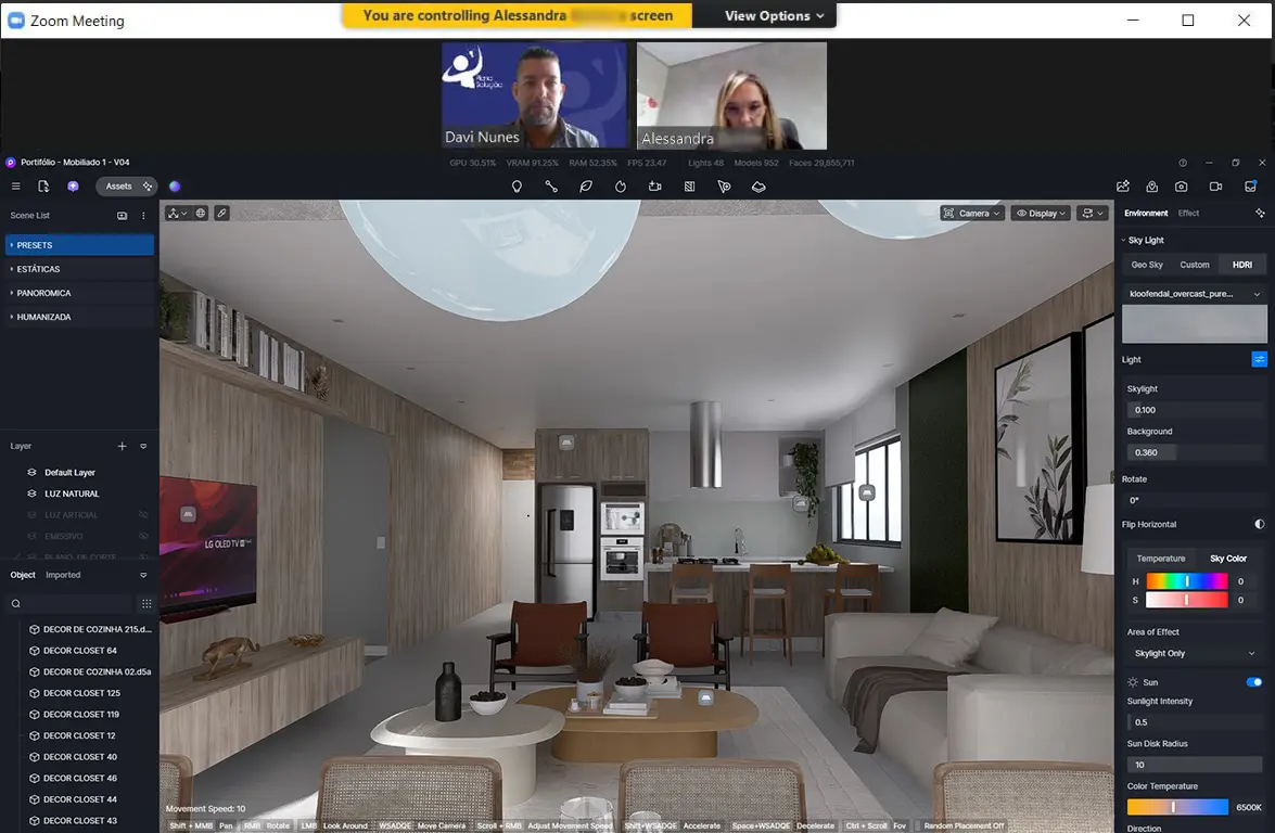 Outro diferencial do D5 Render é sua compatibilidade com softwares como SketchUp, Revit, 3Ds Max, Archicad, Blender e Rhino, possibilitando integração direta dos modelos e atualizações em tempo real. Além disso, o uso eficiente de assets, vegetações, pessoas e animações eleva o nível de apresentação dos projetos, tornando-os mais atrativos para clientes e apresentações comerciais.